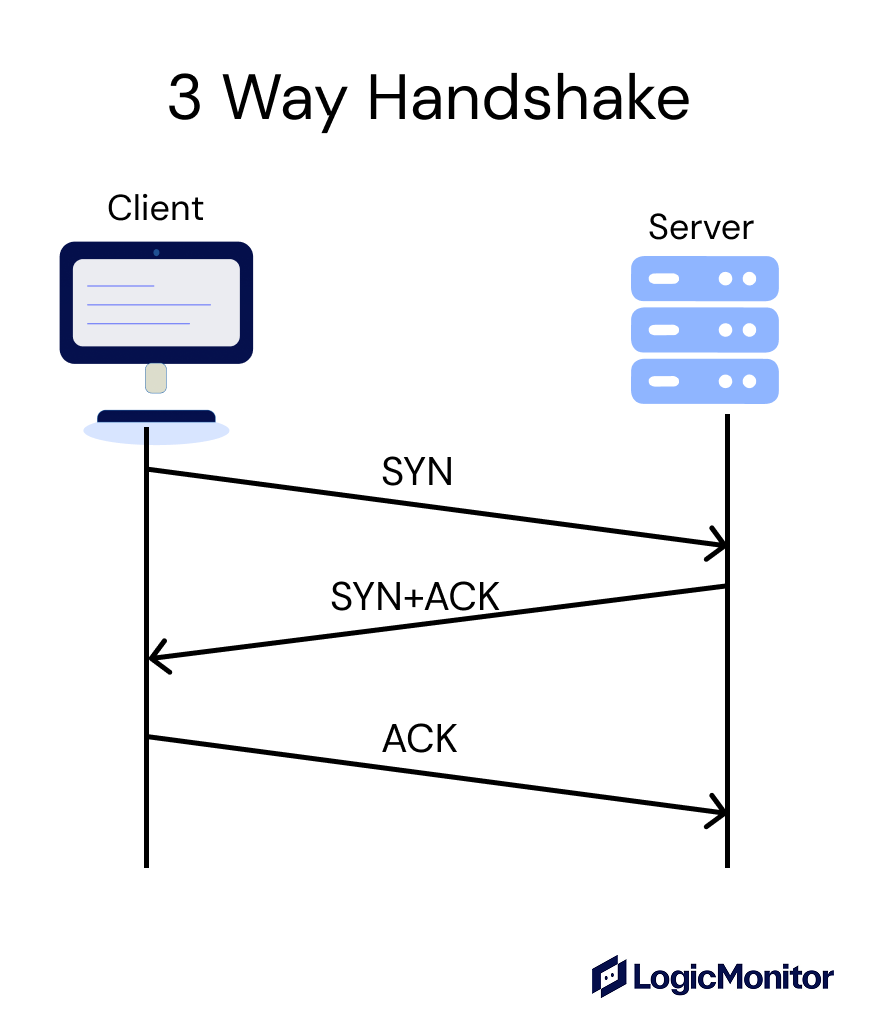 Before two devices can exchange data, they need to agree to communicate. This setup is called the three-way handshake, and it happens in three quick steps: