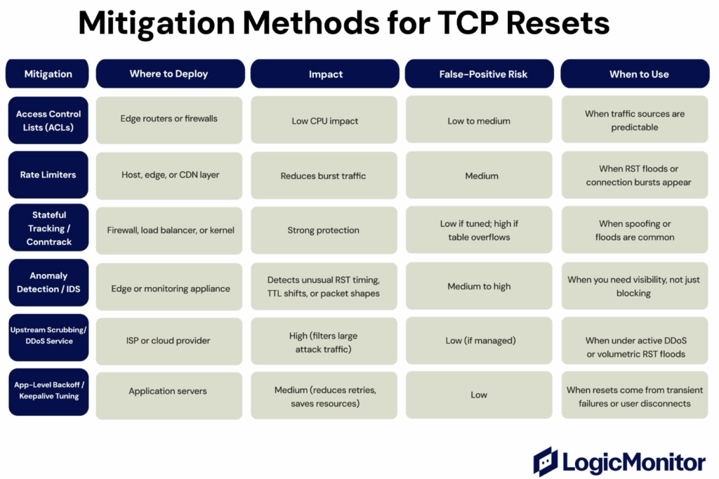 There’s no universal fix for TCP resets. Each control layer—from your host to your ISP—has different tools and trade-offs. So, let’s look at some common methods to overcome TCP RSTs.