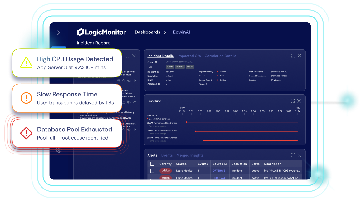 Incidents are identified, diagnosed, and remediated in real time, reducing downtime and eliminating repetitive manual work for your team.