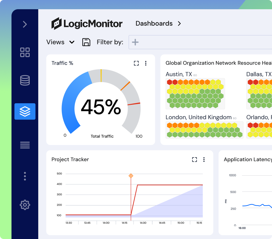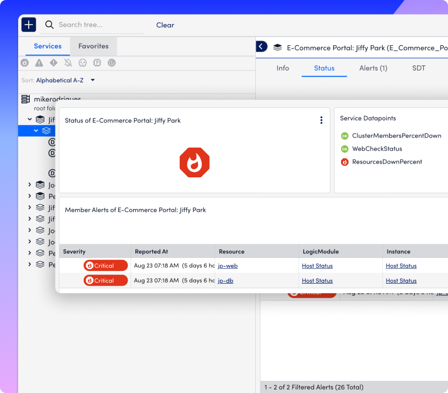 Define service health using key metrics from underlying systems. Assign a criticality level so that your most important systems drive overall status. LogicMonitor updates health in real time, no refresh needed.