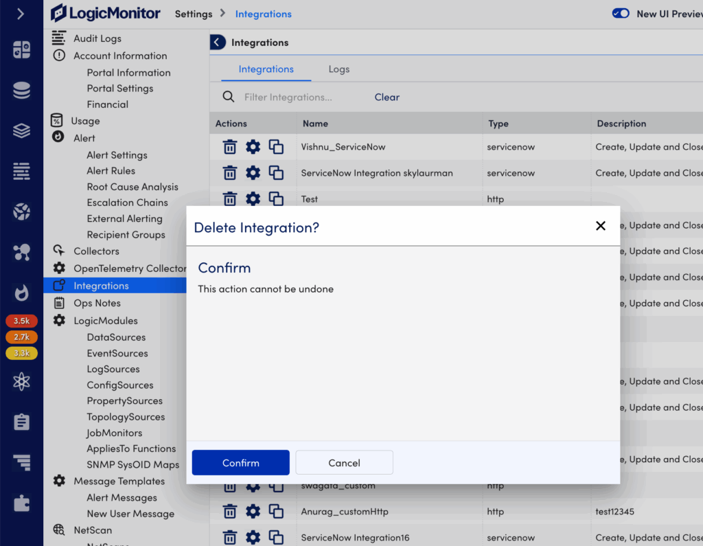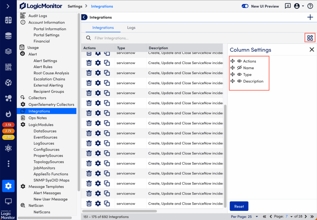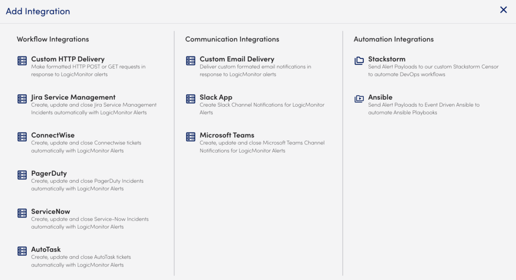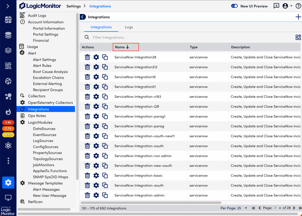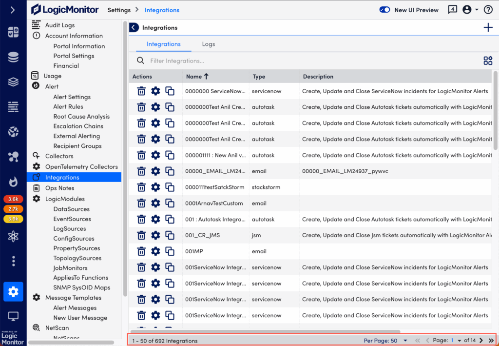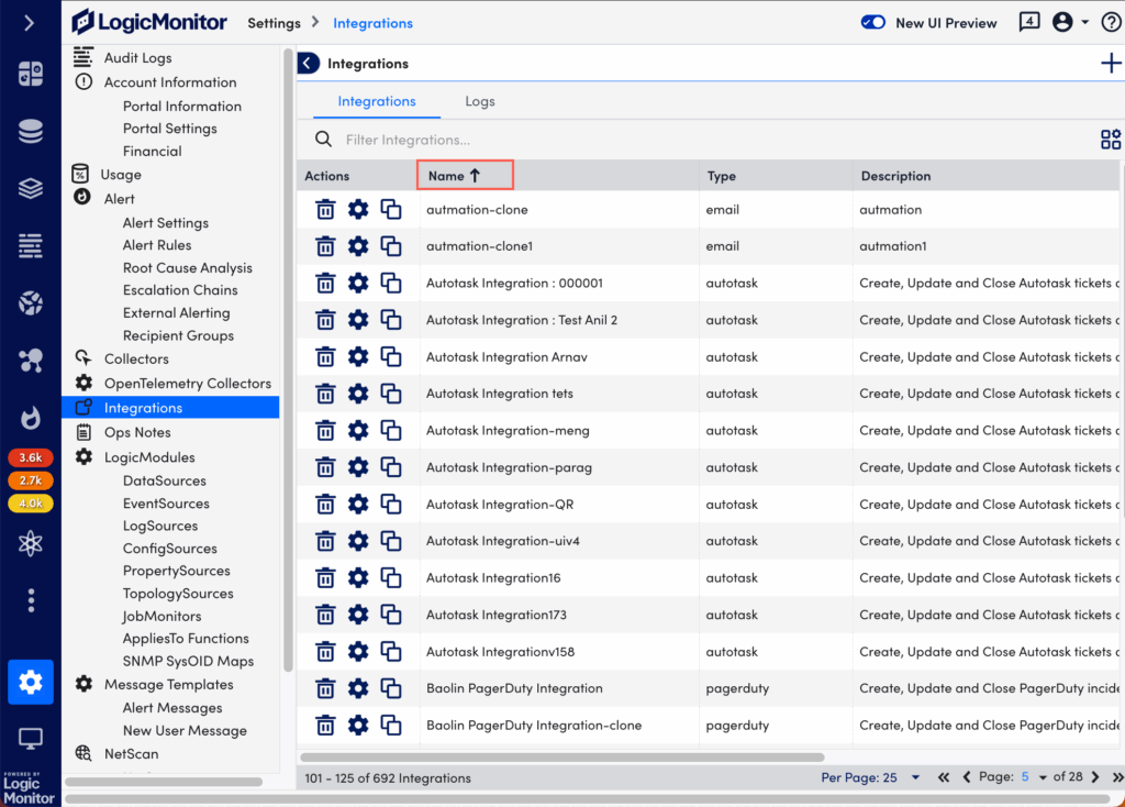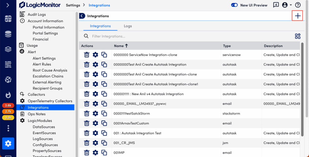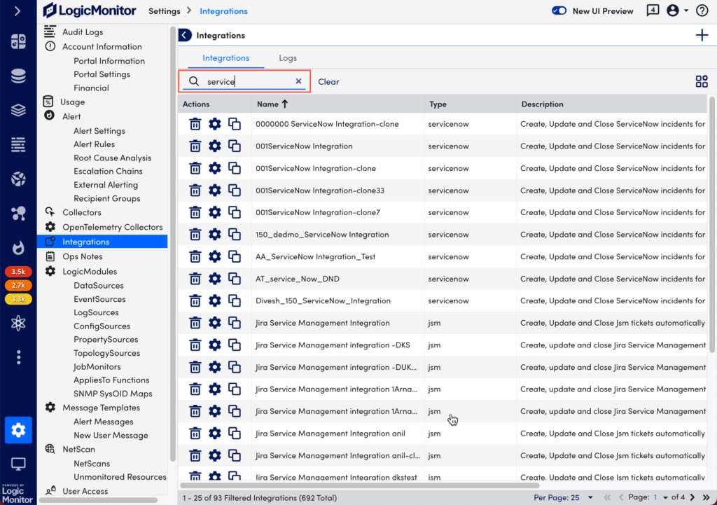 To view the Integrations page, in LogicMonitor, navigate to Settings > Integrations. The integration page appears.