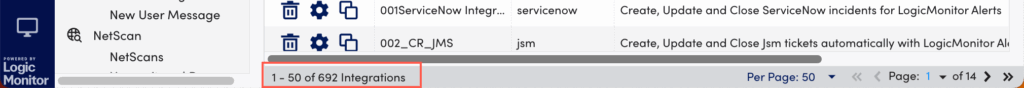 The following option shows the total number of integrations and also shows the range of integration numbers that are being displayed per page.