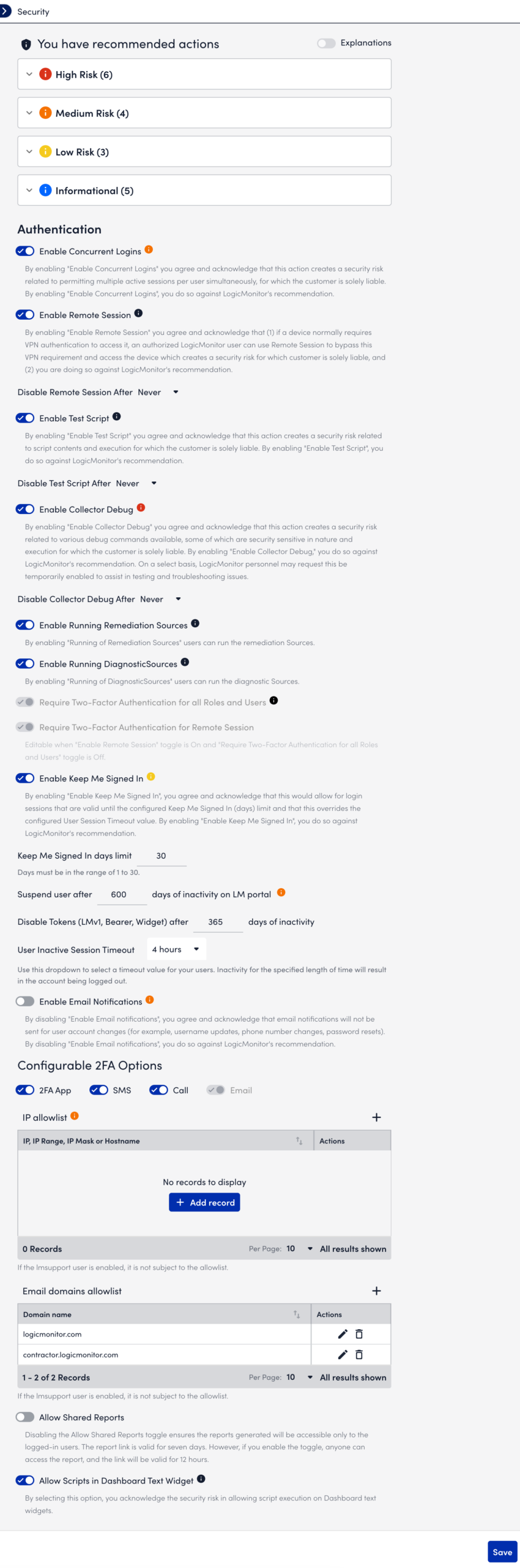 LogicMonitor Security Recommended Actions